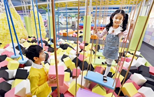 대형마트 내에 들어서는 유아동 테마파크도 규모는 물론 질적으로도 성장하고 있다. 지난해 12월 오픈한 홈플러스 파주운정점에는 트램폴린 파크 '점핑스파이더'가 들어섰다.
