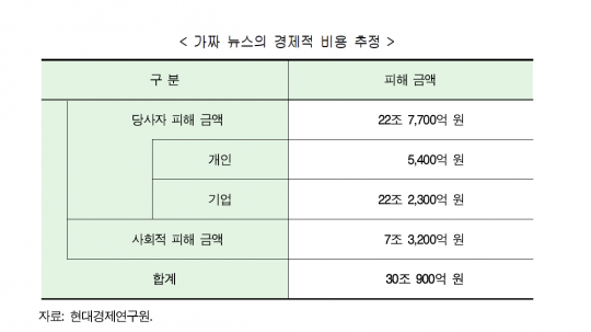 그렇다면 가짜뉴스로 인한 경제적 피해는 얼마나 될까.