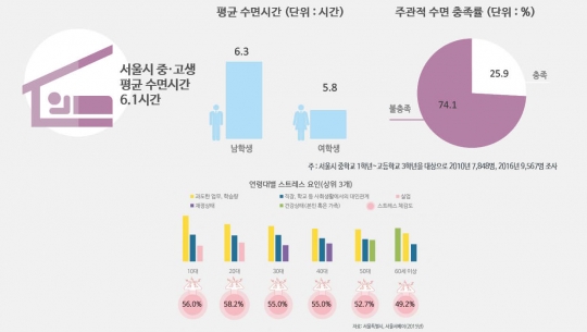 서울시 중·고생 평균수면시간과 연령대별 스트레스 요인/서울연구원