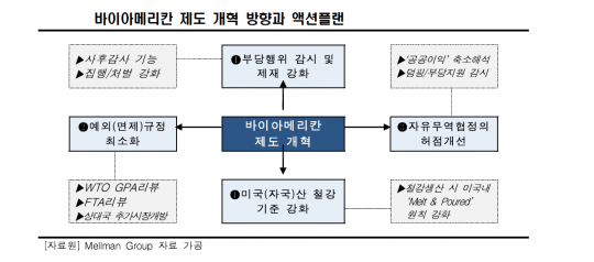7일 코트라(KOTRA)가 펴낸 '미국의 바이아메리칸 정책 분석 및 향후 우리기업의 대응방향' 보고서에 따르면 트럼프는 지난 4월 미국산 구매의무 법으로도 불리는 '바이 아메리칸 법' 강화 방안 마련을 지시하는 행정명령에 전격 서명했다. 미국산 제품 사용을 최대화하고, 편법적인 예외 적용을 최소화하는 방안을 마련토록 한 것이다.