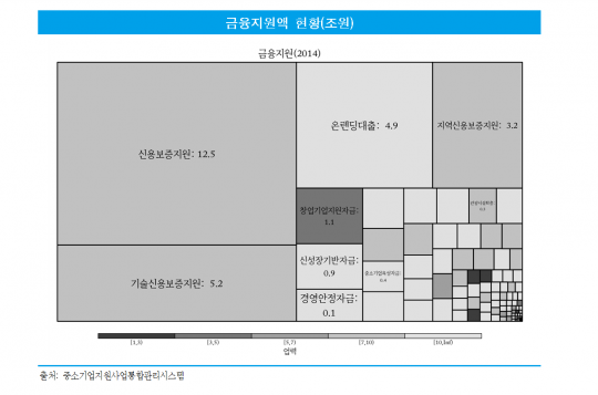 특히 2014년의 경우 중소기업들에게 흘러들어간 자금의 99.1%가 은행 또는 정책자금을 통해 조달될 정도로 융자 및 정책자금 쏠림 현상도 심각하다.