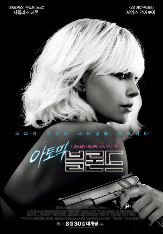 마지막으로 영화 '아토믹 블론드'는 미국, 영국, 독일, 러시아 각국의 스파이가 모인 베를린에서 M16 최고의 비밀요원 '로레인'이 전 세계 스파이 명단과 이중 스파이를 찾아야 하는 미션을 수행하는 스파이 액션 블록버스터이다. 샤를리즈 테론의 과감한 액션 열연이 화제를 모으고 있는 가운데 제임스 맥어보이와 소피아 부텔라 등의 배우들이 스파이로 출연해 지금껏 본 적 없는 스파이 액션의 새로운 스타일의 액션 시퀀스와 감각적인 연출을 선사한다.