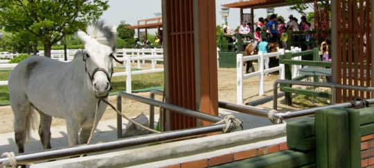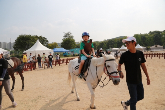 가장 인기가 많은 어린이 승마체험은 어린이가 승마하기에 가장 안전한 잘 훈련된 셔틀랜드 포니를 활용한다. 보조자가 인도하여 코스를 따라 말을 타고 이동하는 동안 누구나 체험현장을 관람할 수 있게 울타리로 된 오픈형 체험장을 마련해 부모가 아이의 체험장면을 가까이 지켜볼 수 있게 배려했다.