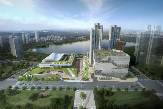 오는 2019년 수원 광교에 오픈 예정인 갤러리아백화점 조감도. /한화갤러리아