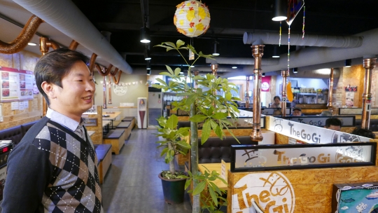 더주는고기집 주인인 도형준 대표가 홀을 쳐다보며 웃고 있다. /김승호 기자