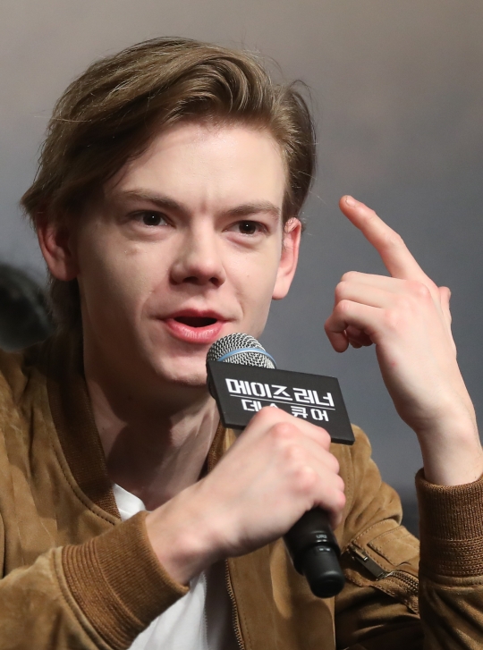 배우 토마스 생스터가 11일 오전 서울 여의도 콘래드호텔에서 열린 영화 '메이즈러너 데스 큐어' 기자간담회에서 질문에 답하고 있다./연합
