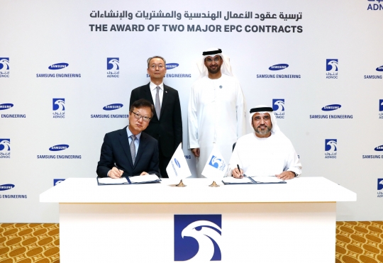 삼성엔지니어링은 아부다비국영석유회사(ADNOC) 자회사인 'ADNOC Refining'과 ▲루와이스 중질유 처리시설(26억 달러) ▲배출열회수 프로젝트(4억7000만 달러) 계약을 각각 체결했다. 이는 아부다비 서쪽 230㎞에 위치한 루와이스 정유공장에 하루 생산량 17만 배럴의 탈황설비를 신설하고 기존 정유플랜트를 개보수하는 프로젝트다. 또 루와이스 공단의 배출열을 활용해 전력을 생산하는 발전소와 담수생산 시설도 건설키로 했다.