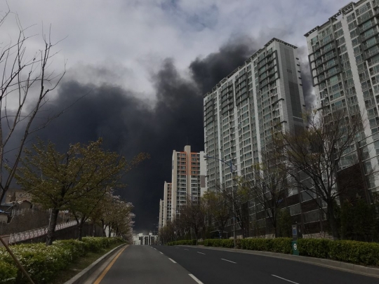 인천 동구의 한 아파트가 검은 연기로 뒤덮혔다./메트로 신정원