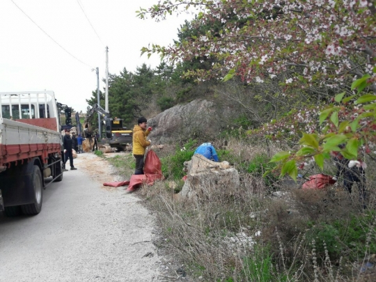 또한, 청소차 1대, 백호우 1대, 화물차 2대 등의 장비가 동원돼 섬 한켠에 쌓여있던 대형쓰레기를 말끔히 수거했다.