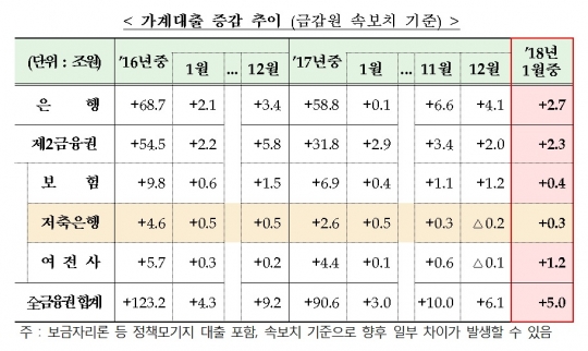 그 결과 금융감독원에 따르면 지난해 1~9월 중 저축은행의 가계대출 증가액은 2조4000억원으로 지난해 같은 기간 증가액(3조5000억원)보다 1조1000억원 줄었다. 연간으로 따져보면 저축은행의 가계대출은 2016년중 4조6000억원 늘었으나, 2017년 중엔 2조6000억원 증가에 그쳤다.