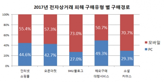 서울시는 지난해 시 전자상거래센터의 소비자 피해상담 8364건을 분석한 결과 모바일 쇼핑 소비자 피해가 2015년 25%에서 2017년 59%로 증가했다고 23일 밝혔다.