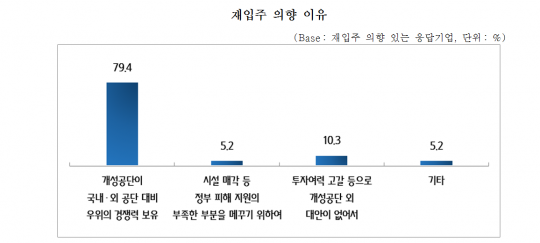 재입주를 희망하는 이유로는 '국내외 공단 대비 우위의 경쟁력 보유'가 79.4%로 가장 많았다. '투자여력 고갈 등으로 개성공단 외 대안이 없어서'도 10.3%에 달했다.