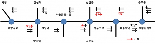 퇴계로와 왕십리로 사이 가변차로 폐지 구간./ 서울시