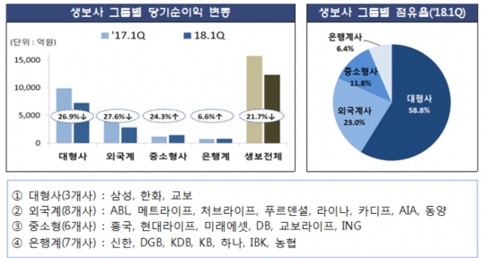 생명보험사의 지난 1분기 순이익이 20% 이상 급감했다.