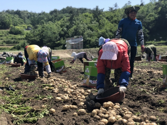 보성군 회천면과 득량면 들녘에서는 지역경제 효자작목인 햇감자 수확이 한창이다.