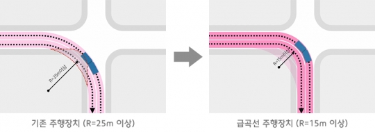 특히 일반도로 위에서 운행하는 트램에 설치할 경우 자유로운 선로 구축이 가능하다고 현대로템은 설명했다. 또 이번에 개발된 급곡선 주행장치는 차륜과 선로가 맞닿는 압력을 기존 장치보다 30% 이상 줄여 소음이 적고 차륜·선로의 수명을 연장할 수 있다.