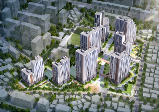 정비계획안에 따라 4만4658.5㎡ 부지에 법정상한용적률 246.64% 이하를 적용, 최고 25층 규모 917가구(소형임대 43세대 포함) 아파트 8개동으로 새로 지어진다.