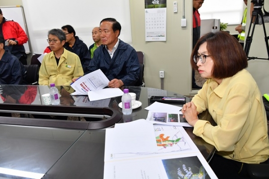 은수미 성남시장이 취임식을 미루고 풍수해로 인한 재해예상지역을 돌며 철저한 안전대책을 당부하고 있다.사진/성남시