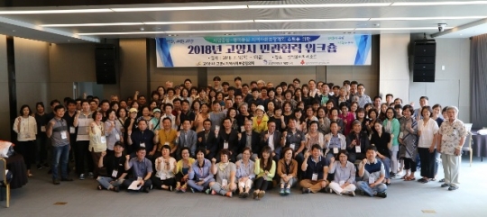 고양시, '사람 중심' 행복한 복지공동체 위한 민관협력 워크숍 참가자들이 참가를 기념 하고 있다.사진/고양시