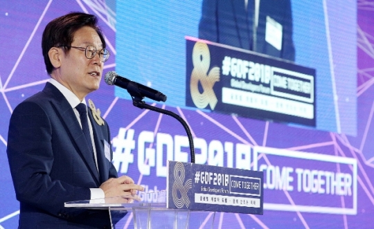 2018 GDF에서 환영사를 하는 이재명경기도지사.사진/경기도