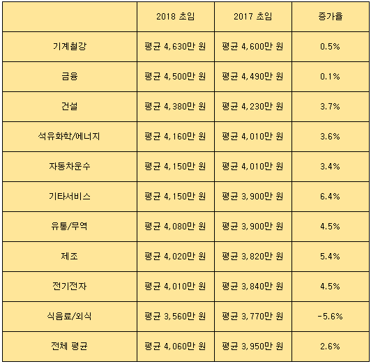 2018 대기업과 중소기업 대졸 신입직 평균 연봉 현황 /잡코리아