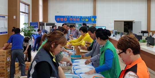 장흥군 안양면 지역사회보장협의체(공동위원장 박광규, 유재명)는 지난 13일 사회복지공동모금회 및 지역민들과 합심하여 추석맞이 생필품 꾸러미 나눔 사업을 추진했다.