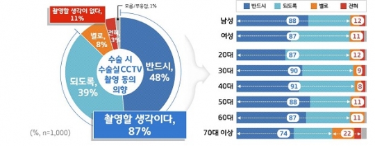 - 수술실 CCTV 운영, '민간병원까지 확대돼야'는 87%가 긍정