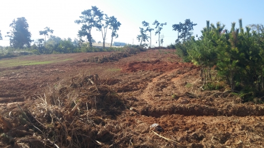 전남 무안군 현경에서 이달 초순경 아름드리 소나무를 굴삭기를 이용해 쓰러뜨리고 작은 소나무와 잡목을 뽑아 5톤이상의 폐기물을 야적해 말썽이다.