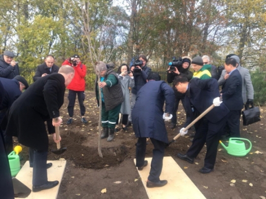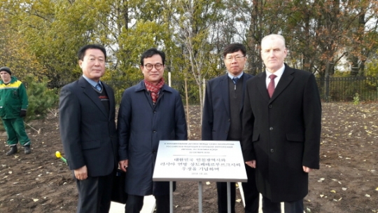 우정의 나무 식목(공원기획팀장, 주상트페테르부르크 총영사, 구미팀장, 크론슈타트시장) (사진/인천시)