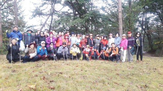 지난 27일 경기도 수원시에 거주하는 '광교호수 노르딕 워킹 동호회' 회원 40명이 동호회 2주년을 기념해 영광 물무산 행복숲을 찾았다.