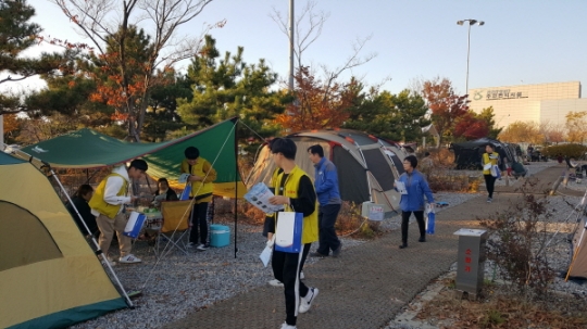 캠페인 참가자들 가스안전안내문을 전달하고 있다. (사진/인천시)
