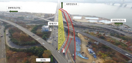 성산대교 임시가교 개통으로 인한 우회도로 전경./ 서울시