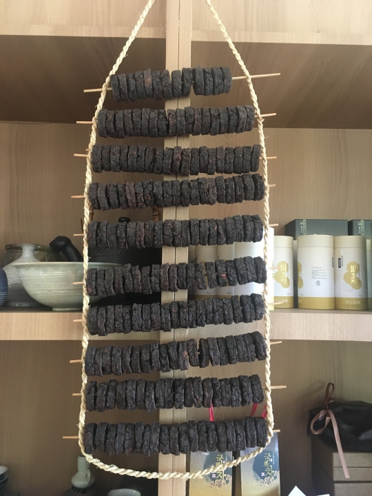 장흥 청태전은 구멍 뚫린 동전 모양으로 빚어 발효시킨 전통차로 구수한 맛과 특유의 깊은 향으로 유명하다.