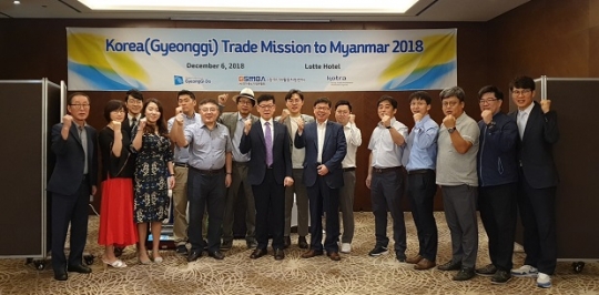 경기도 시장개척단이 미얀마 양곤에서 좋은 성과를 기대하며 선전을 다짐하고 있다/경기도