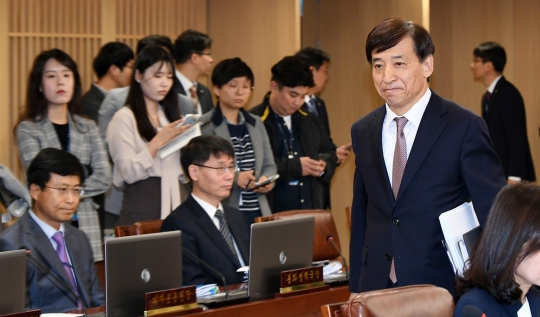 이주열 한국은행 총재가 10월 18일 오전 서울 중구 세종대로 한은 본관에서 열린 금융통화위원회에 참석하고 있다. / 손진영 기자