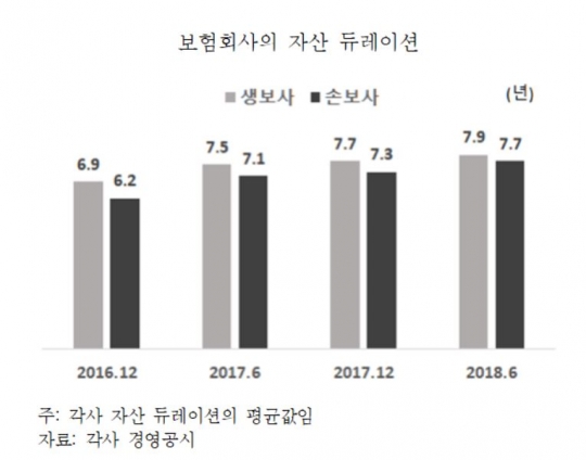 보험연구원 관계자는 "금리가 상승할 것으로 전망되지 않는다면 금리위험이 큰 보험회사는 금리위험액 축소를 위한 자산운용 전략을 실행하는 것이 합리적"이라며 "저금리 환경이 지속된다는 가정하에 자산듀레이션을 확대하고, 금리부자산 비중을 확대하는 자산운용 기조를 유지할 필요가 있다"고 강조했다.