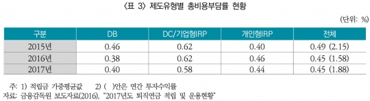 수수료를 포함한 퇴직연금 총비용부담률은 2017년 기준 0.45%로 나타났다.
