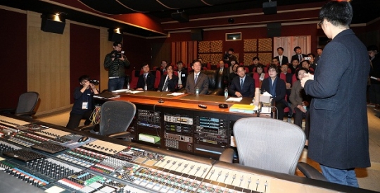 고양 경기문화창조허브 개소식에서 이재명 경기도지사, 이재준고양시장이 참관해 방송 문화 장비를 시연하고 있다. /경기도