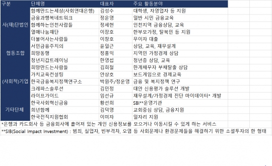 이번 협약은 사회 취약계층 과 금융소외계층을 위해 현장에서 다양한 지원 활동을 해 온 기관들이 상호 협력 네트워크를 구성해 각 기관의 전문성을 살리면서 시너지 효과를 거두는 것이 목적이다.