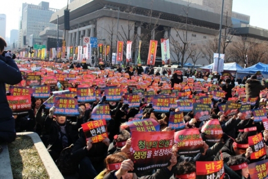 27일 서울 광화문광장에서 '반국가·반사회·반종교·반평화 한기총 해체 촉구 기자회견 및 궐기대회'가 개최됐다.