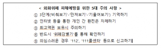 외화위폐 피해예방을 위한 5대 주의 사항/은행연합회