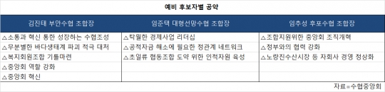 아울러 현 김임권 회장의 의중도 선거 판도에 영향을 미칠 수 있다는 의견도 나온다. 이에 대해 수협중앙회 관계자는 "회장뿐만 아니라 수협중앙회 임원까지 모두 공정한 선거를 위해 특정후보를 위한 행동이나 발설도 삼가고 있는 상황"이라며 "수협을 잘 이끌어갈 수 있는 능력있는 인물이 가장 중요한 기준이 될 것"이라고 말했다.