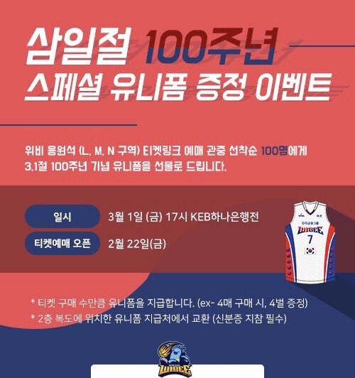 우리은행의 3.1절 100주년 스페셜 유니폼 증정 이벤트/우리은행