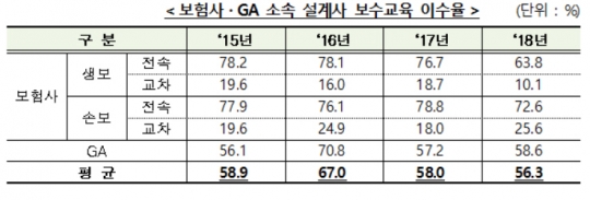 보험사?GA 소속 설계사 보수교육 이수율/금융위원회