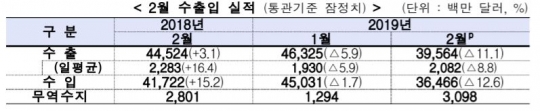 산업통상자원부에 따르면 지난달 수출액은 1년 전보다 11.1% 감소한 395억6000만달러를 기록했다. 지난해 12월(-12%), 지난 1월(-5.8%)에 이어 3개월 연속 하락세다. 한국 수출의 20%를 차지하는 반도체 부진이 가장 큰 원인이다. 정부는 단기적으로 235조원 규모의 무역금융 지원에 나서겠다는 방침이지만 금융 지원은 과거에도 수차례 반복됐던 대책이어서 실효성에 물음표가 붙는다.