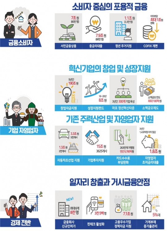 금융위는 주력산업의 자금애로를 해소하고, 혁신·중소기업에 대한 투자를 활성하시키는 방안도 제시했다.