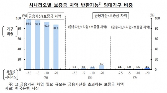 시나리오별 보증금 차액 반환가능 임대가구 비중. /한국은행