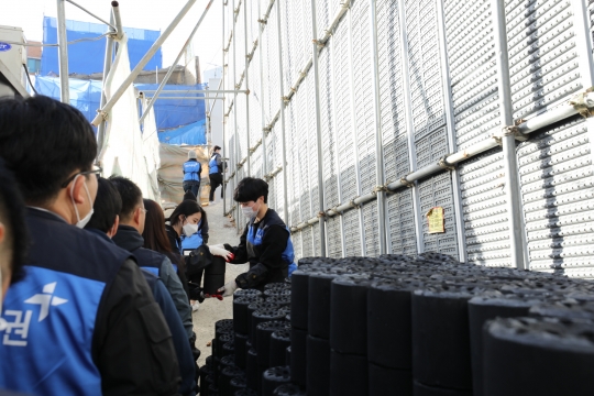 2018년 11월 28일 현대차증권 임직원들이 사랑의 연탄 나눔을 하고 있다./사진=현대차증권