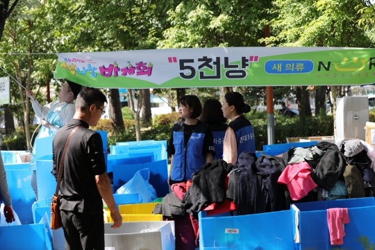 2018년 09월 22일, 현대차증권 임직원들이 사랑 나눔 바자회를 하고 있다./사진=현대차증권