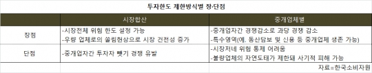 윤민섭 한국소비자보호원 연구위원은 "중개업체별로 한도를 제한할 경우 시장 전체에 대한 위험을 통제하기 어렵고, 부실업체에도 투자가 계속돼 피해가 꾸준히 발생할 수 있다"며 "시장이 성장한 만큼 환경변화에 따라 시장전체에 대한 한도를 제한하는 방법으로 시장건전성을 끌어 올리는 방법 등을 이용할 필요가 있다"고 지적했다.